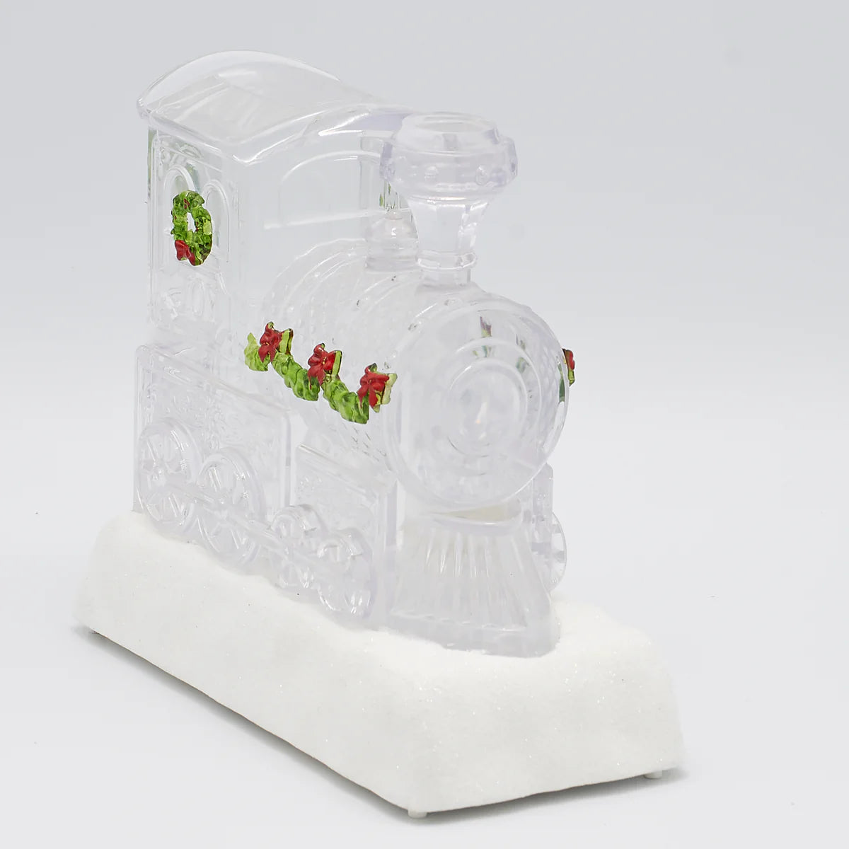 Bring festive motion and glow to your holiday decor with this clear lighted train engine. Swirling sparkle adds a magical touch to any display or tabletop.