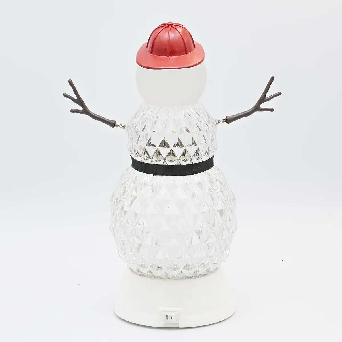 Honor holiday heroes with this festive lighted swirl fireman snowman. Wearing a bright red helmet and scarf, this cheerful figure sparkles as swirling glitter glows with warm light. A heartwarming tribute to first responders, it makes a meaningful addition to mantels, shelves, or seasonal displays and a thoughtful gift for the season.