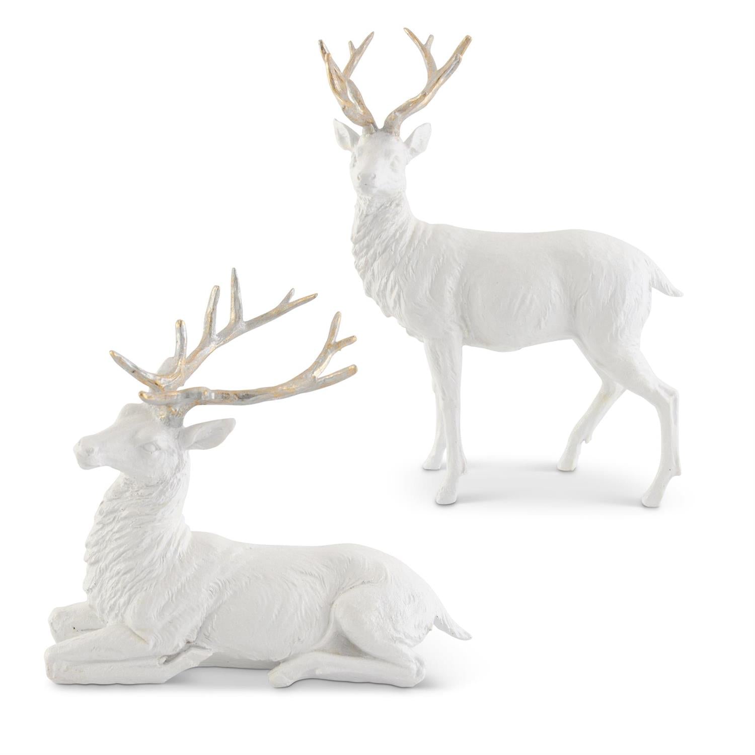 White Glitter Resin Deer w/Gold Standing