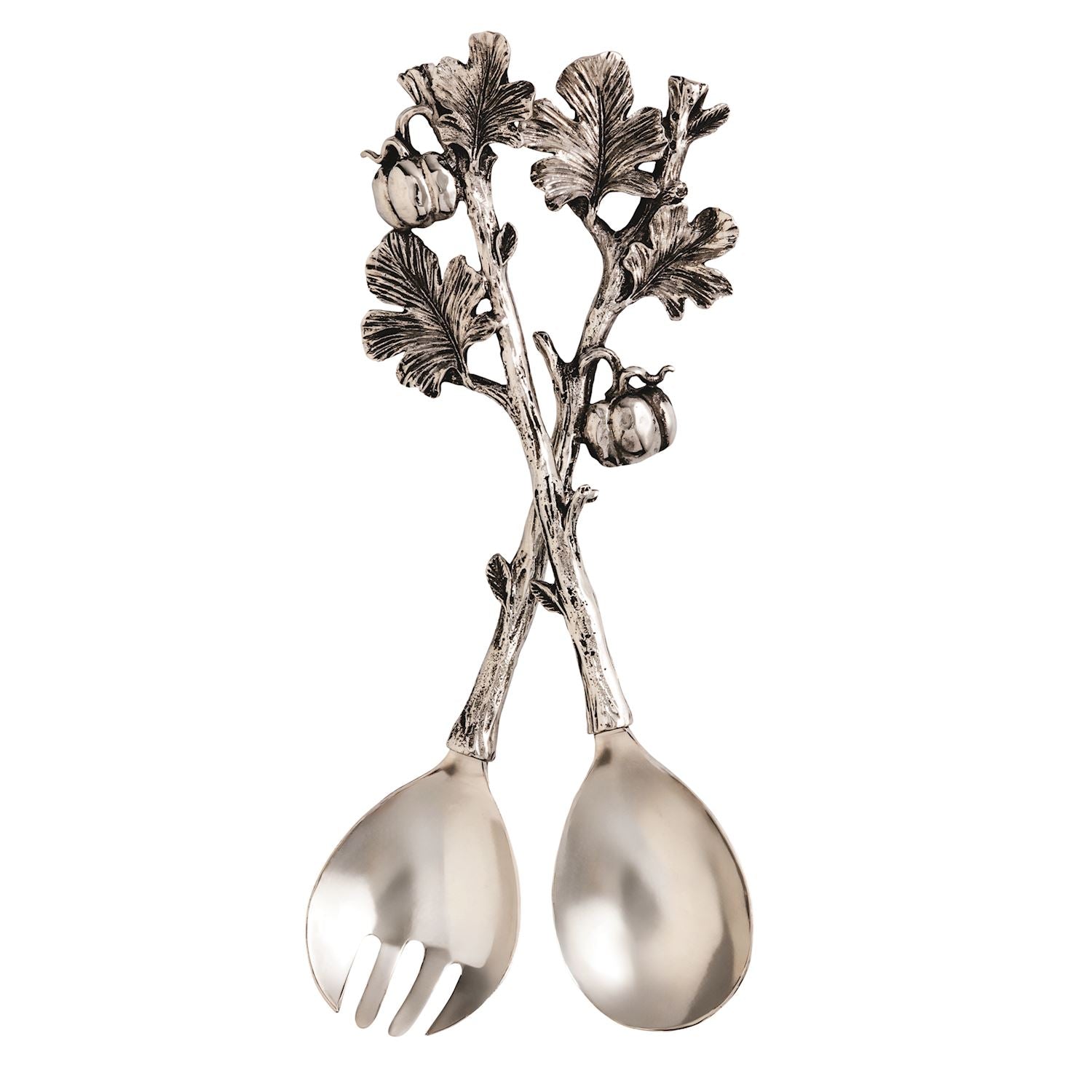 2-piece set. Stainless steel salad servers with sculpted cast aluminum branch handles.