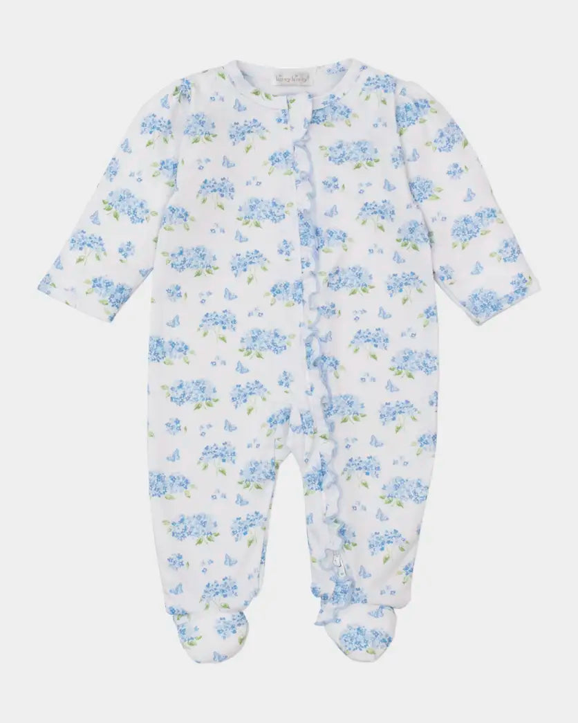 Playfully patterned, this cozy, blue hydrangeas print zippered footie for your baby is made from the softest Pima cotton for ultimate comfort.