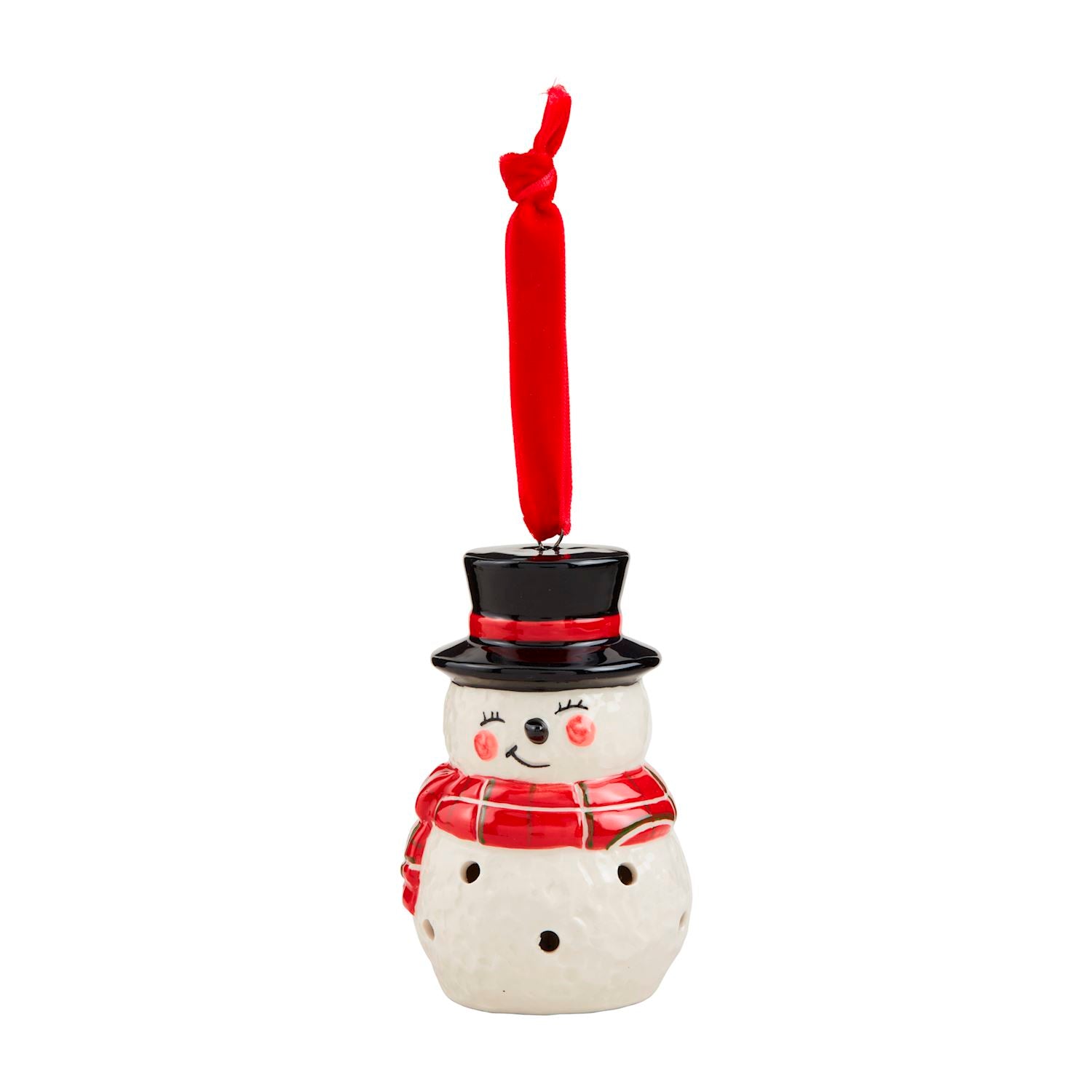The Classic Snowman Light-Up Ornament is a beautifully hand-painted stoneware ornament that adds a touch of charm to any holiday decor. This ornament features intricate pierced holes that allow LED lights to shine through, creating a warm and inviting glow. The ornament also comes with a velvet hanger, making it easy to display on your Christmas tree or anywhere else in your home. With its battery included, you can enjoy the soft illumination of this ornament right out of the box. Measuring 3 3/4" x 2 1/2", this snowman ornament is the perfect size to add a festive touch to your holiday decorations.