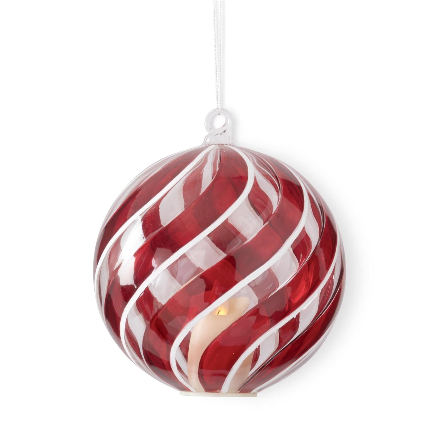 Red, White, & Clear Glass Swirl LED Ornament 7.5"