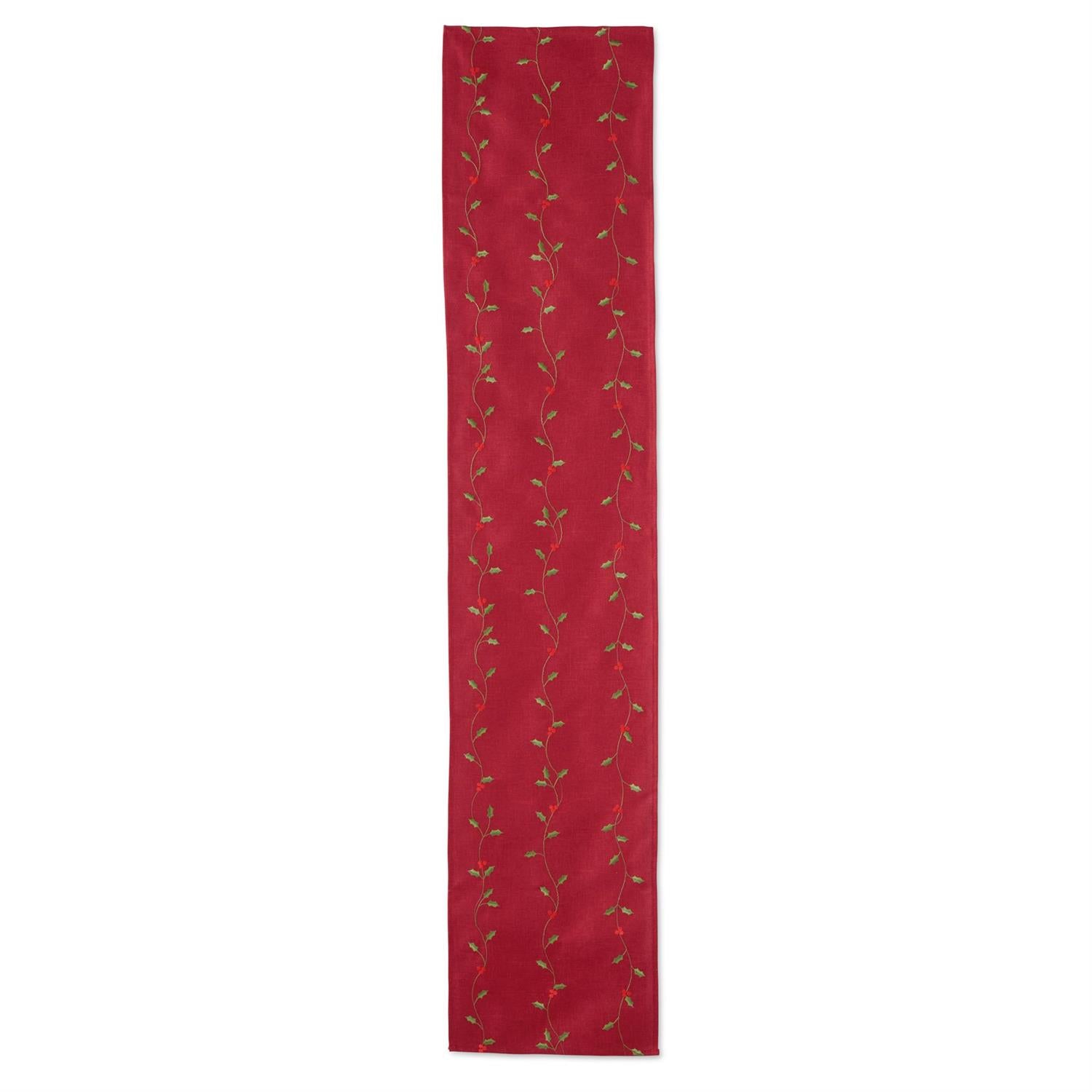56029B Red Table Runner w/Embroidered Holly Leaves