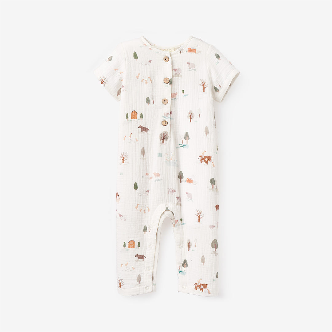 Elegant Baby On The Farm Organic Muslin Jumpsuit 6-9m