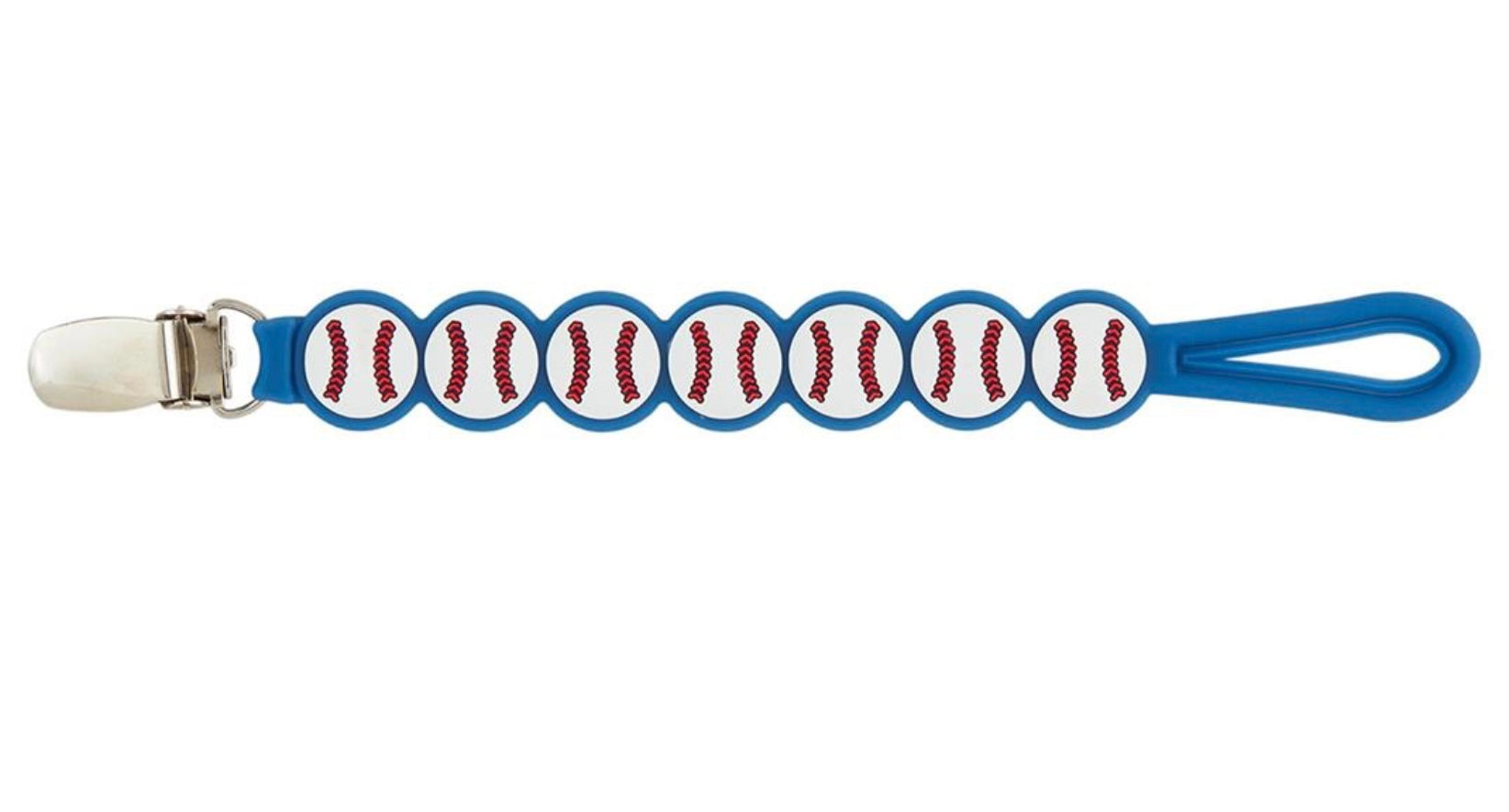 Clip-on BPA free silicone pacy strap. Ages up to 18M.