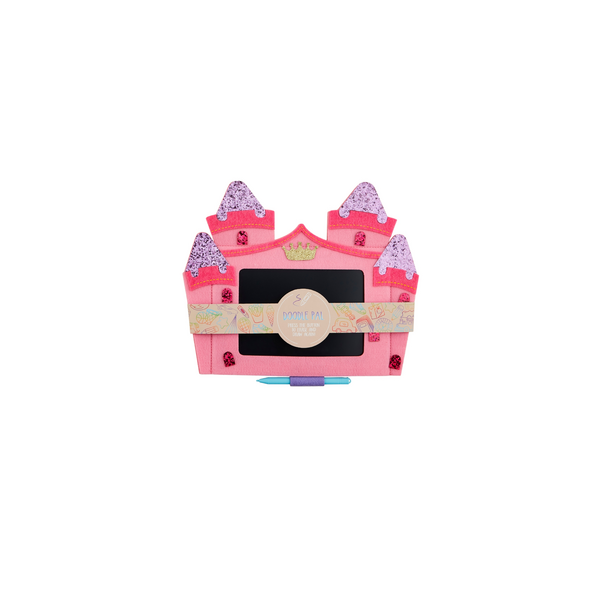Castle Doodle Pad offers endless creative possibilities for young artists. This innovative writing tablet features a pressure-activated liquid crystal display that allows children to doodle, draw, and erase with ease. The attached stylus pen ensures precision and convenience, while the one-touch erase button makes it simple to start fresh with a new masterpiece. The charming felt figural case adds a touch of whimsy and provides protection for the tablet. Designed for children ages 3 and up, this engaging tool encourages imagination and creativity. The Castle Doodle Pad comes with batteries included, so it's ready for use right out of the box. Measuring 10 1/4" x 11", it's the perfect size for little hands to explore their artistic talents.