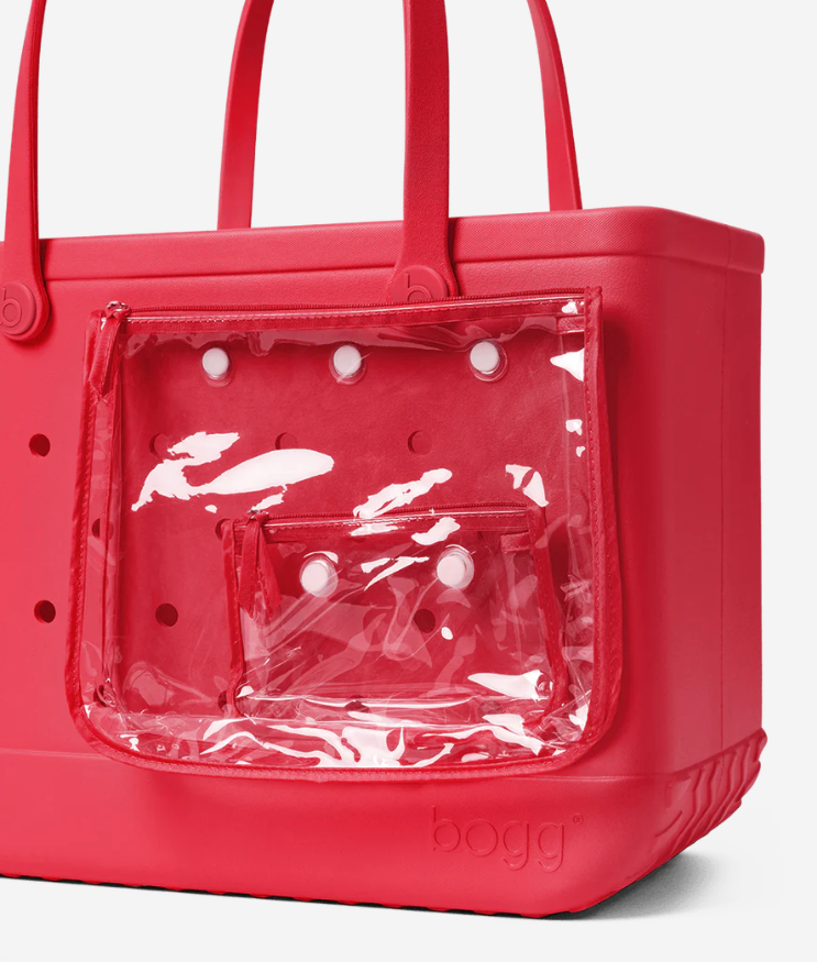 Each Original Bogg Bag comes with a set of two clear insert bags. The set contains one large insert bag with 3 white buttons across the back and one small insert bag with 2 white buttons across the back. Simply snap the buttons on the back of the insert bags into any free hole on the Bogg Bag (inside or outside) to keep smaller items in reach.