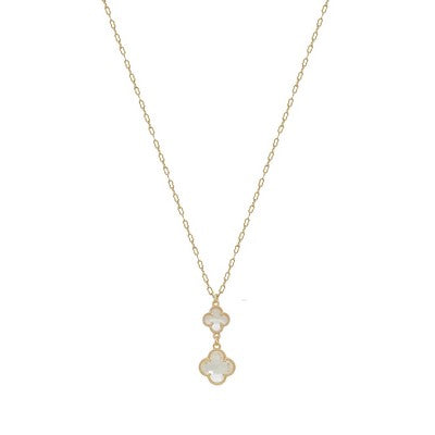 16-18in GOLD CHAIN WITH DOUBLE CLEAR CLOVER DANGLE