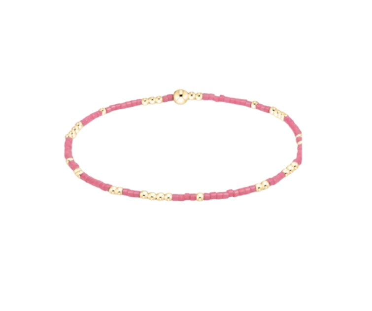 Hand beaded on high performance elastic for a slight stretch to easily roll on and off your wrist