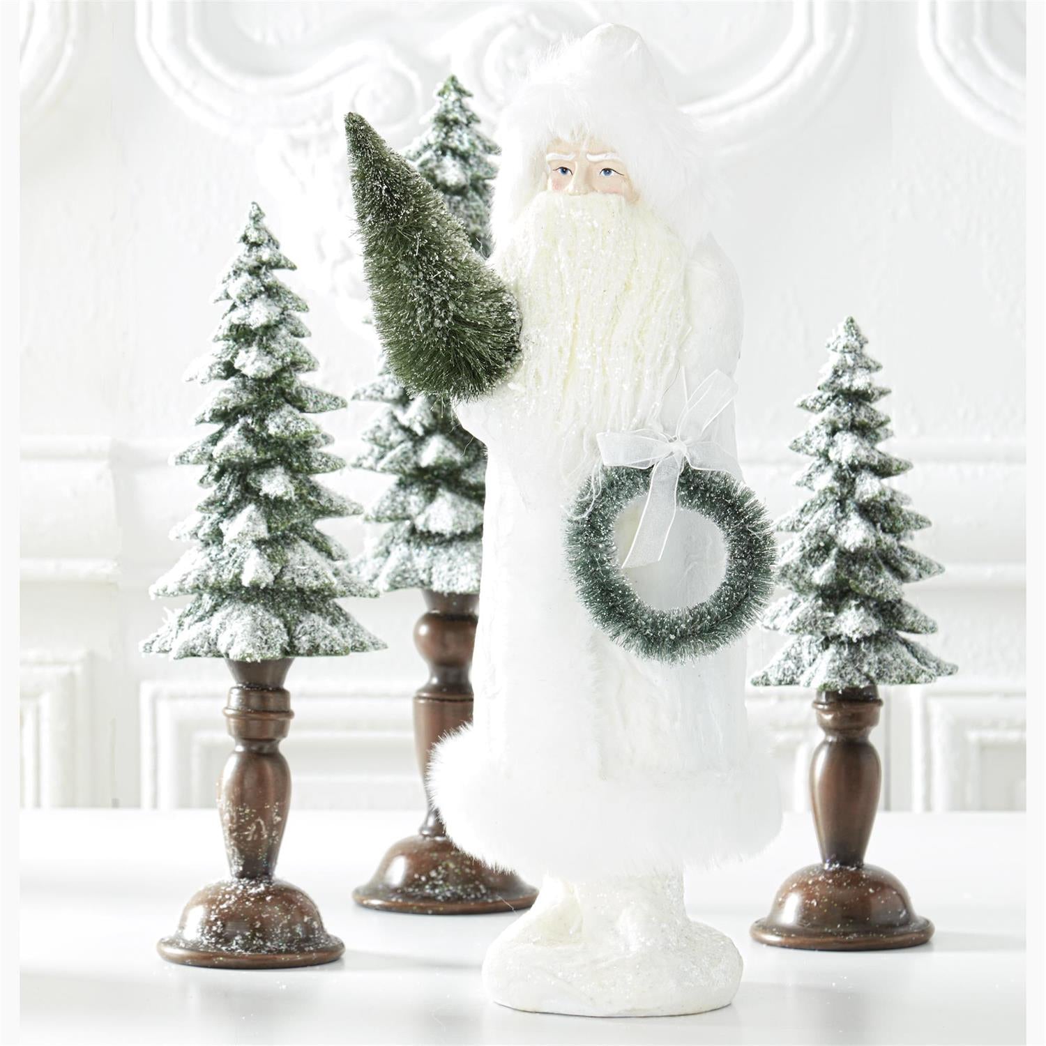 Glitter Cream Fur Santa w/ Wreath & Tree