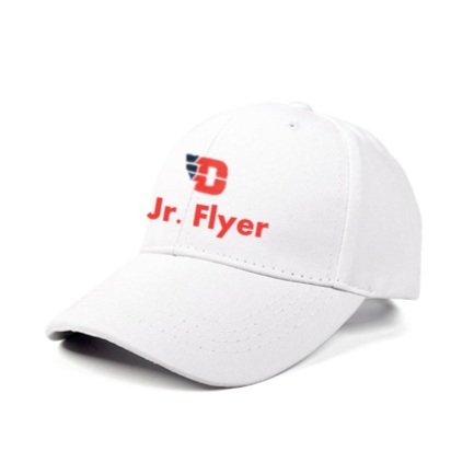 - Kid-sized University of Dayton White & Red “Jr. Flyer” cap
