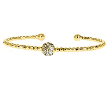 GOLD BEAD CUFF BRACELET WITH DIAMOND BAR