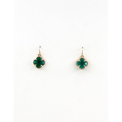 1 1/4in GOLD EARRING WITH GREEN CLOVER DANGLE