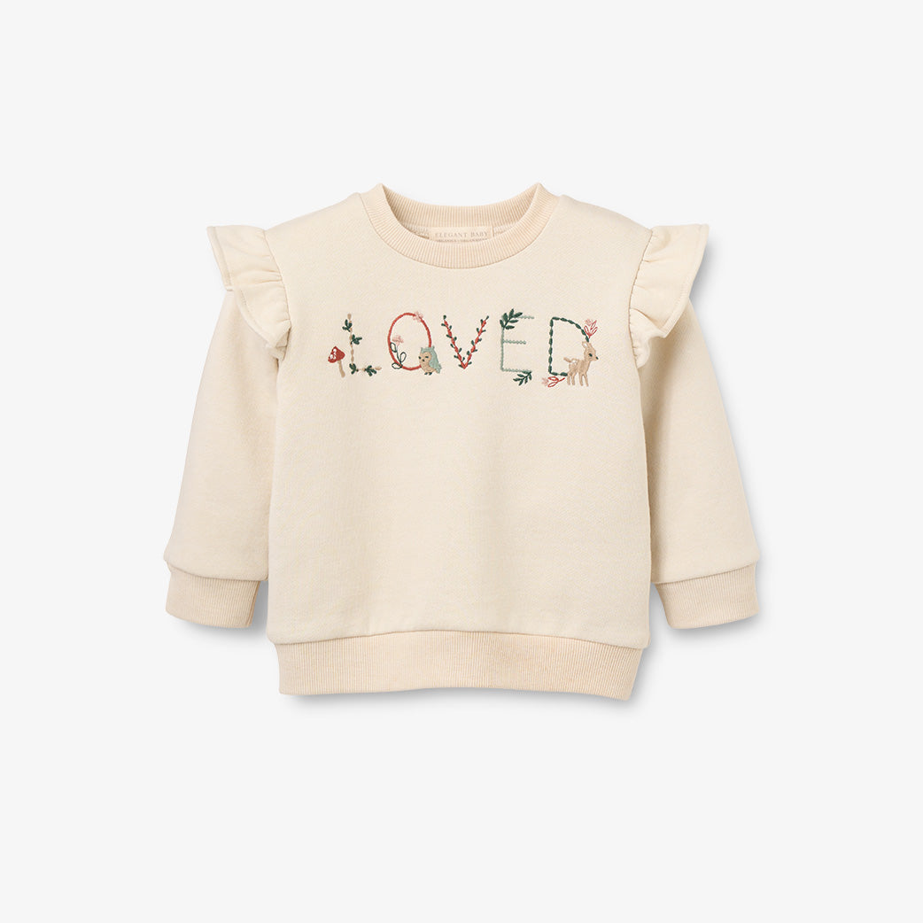 Easy to wear and oh so comfortable, the embroidered "Loved" pullover is a great addition to the wardrobe.