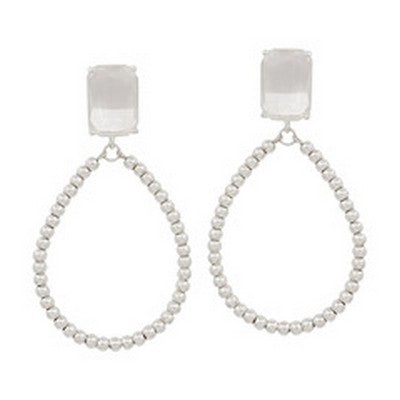 2in SILVER BEAD TEAR DROP WITH CLEAR POST BACK EARRINGS