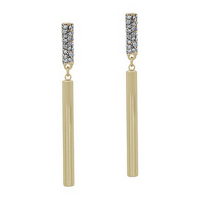 2in PAVE HEMATITE POST BACK EARRING WITH GOLD CYLINDER DANGLE