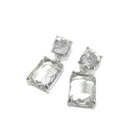 1 1/4in DOUBLE SILVER CLEAR CRYSTAL EARRINGS