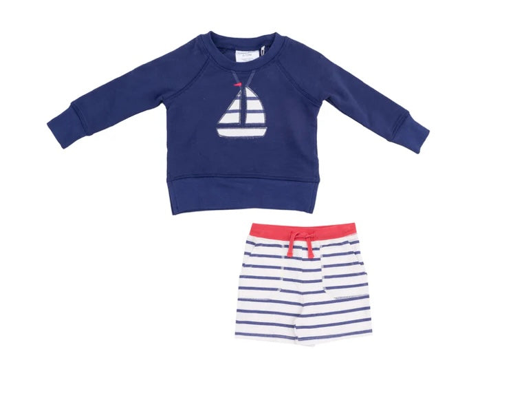 Angel Dear Sailboat French Terry 2T Raglan Sweatshirt w/Applique and Short