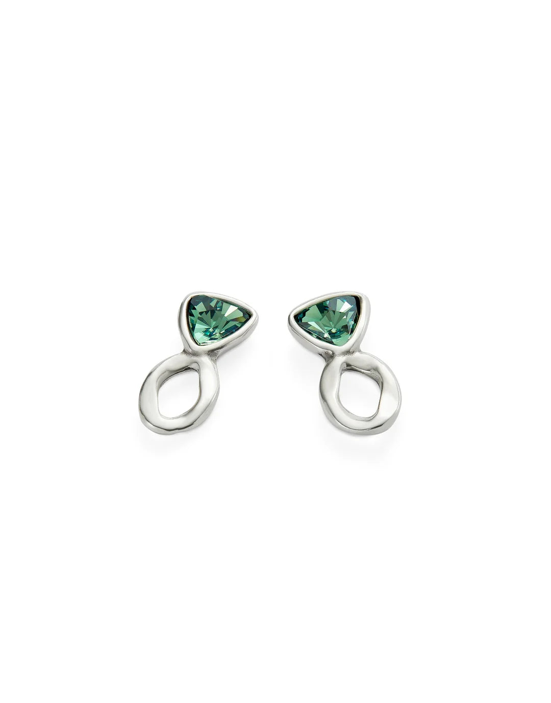 Sterling silver-plated earrings with triangular green crystals.Ser camaleónica is to adapt to everything with talent, while still being you. Is being versatile, resilient and always ready to reinvent yourself. Let your jewelry become a kaleidoscopic and change color. Nobody gets bored with you. Bring fun and dynamism to life. Like the fresh touch of the faceted crystal pieces that play with dimensions. The time to Ser camaleónica is now.