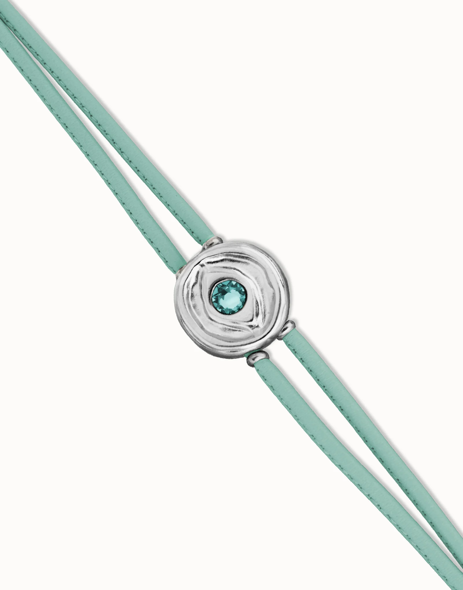 Double turquoise leather bracelet with silver eye. There are people who are visionary, whose intuition is their compass. Ser intuitiva takes into consideration that mystical side of us, allowing us to bring out our hidden self and show it to the world.