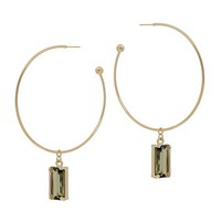2in GOLD HOOP EARRING WITH SMOKEY RECTANGLE DANGLE