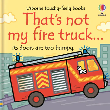 Turn the pages to discover the fire trucks with their bumpy doors, squashy wheels and sparkly lights as they speed through the pages of this sturdy board book.