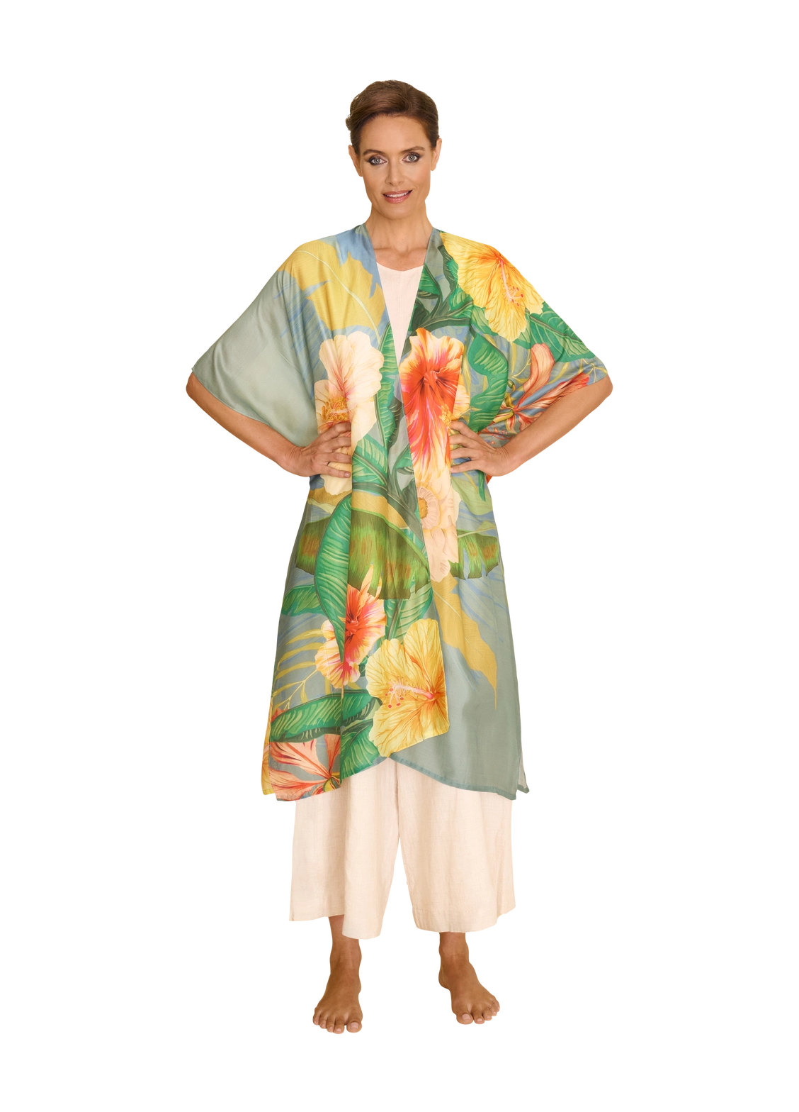 Looking to feel beautifully ornate? Look no further! This is where luxury meets design. Radiant tones and tropical florals dance together to create a wonderfully unique beach wrap around and fabulous addition to every summer wardrobe. Fabric: 100% modal. Cool hand wash only. One Size.