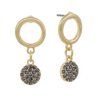 1 1/2in GOLD ROUND POSTBACK EARRING WITH DIAMOND DANGLE