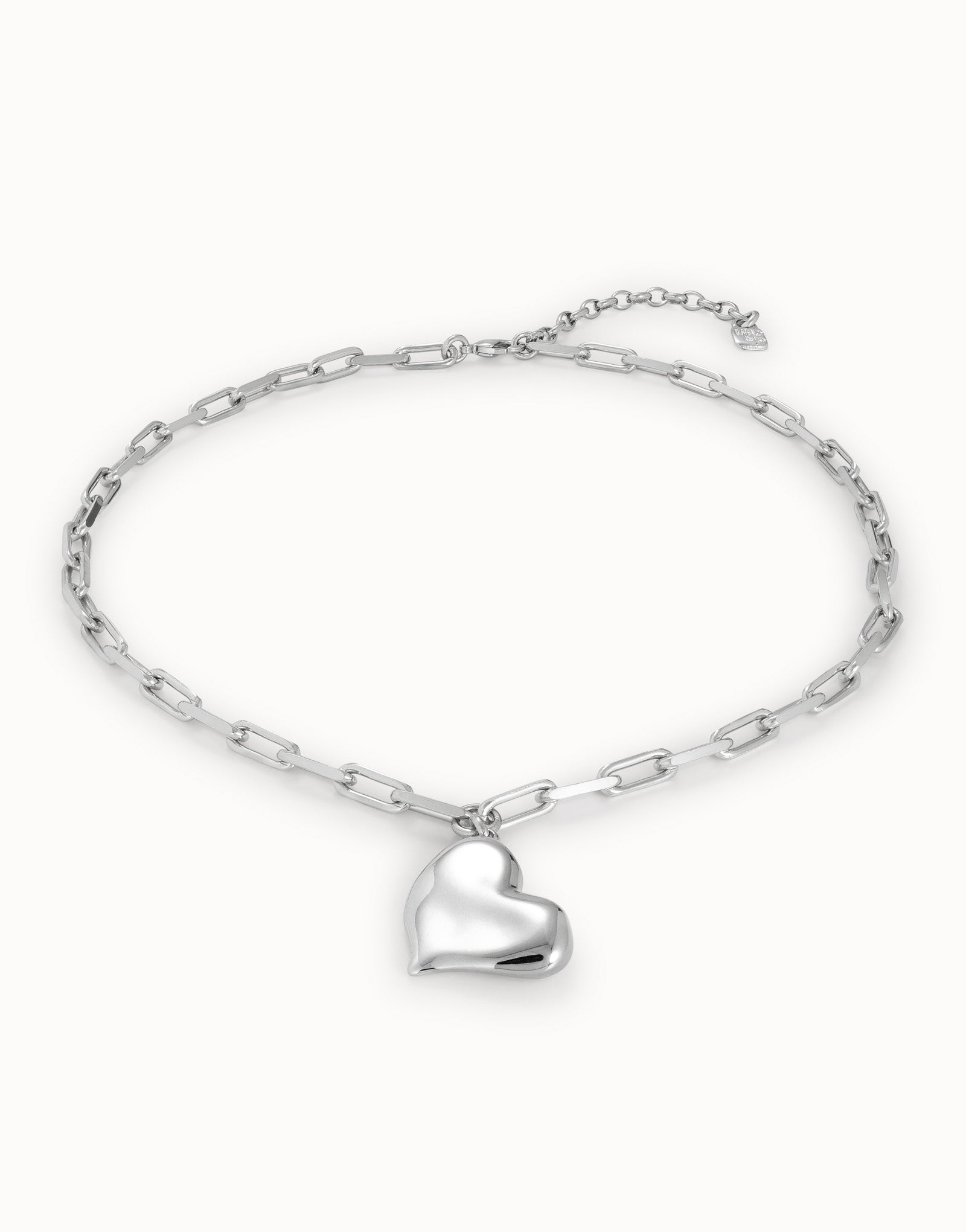 The Heart Beat necklace is a chain of medium-sized links featuring the brand’s iconic heart. It has a lobster clasp allowing the chain length to be adjusted (between 13-46 cm) and weighs 26.7 g. This piece is handmade in Spain using a silver-plated metal alloy. Wear it with the rest of the Emotions collection pieces or any UNOde50 jewelry.