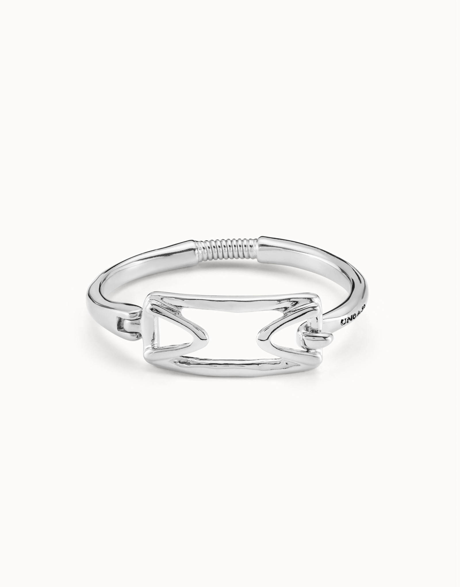 RIGID SILVER BLACELET WITH SPRING AND RECTANGULAR LINK BRAVE||Pieces of organic geometry add courage and give life to the Brave collection with this rigid bracelet with a spring and a large rectangular link. Elegant bracelet that preserves the essence of UNOde50. Creativity, generosity, and abundance.| |This jewel is Made in Spain, 100% handcrafted, achieving a unique design finish.